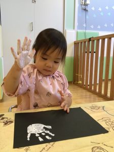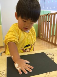 まずは絵の具を塗ってペタッ🖐️
