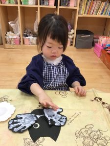 手形やシール、のりを使ってコウモリを作りました🦇