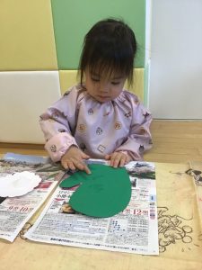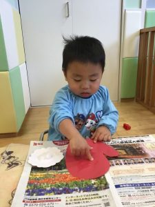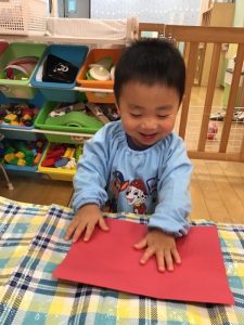 いちご組のお友だちは、手袋を作りました🧤