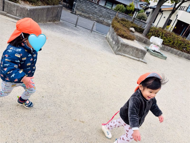公園では、りんご組のお友だち中心にしっぽ取りが大流行😆