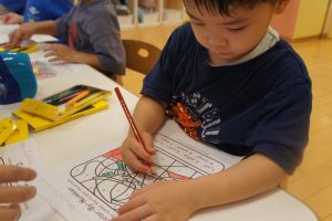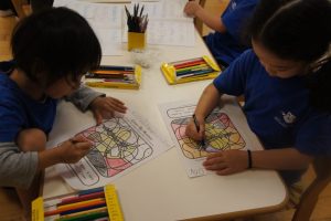 番号に書かれている色を自分たちで考えて、理解して塗り