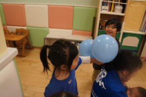 風船遊びをして遊び、好きな色の風船を膨らませて遊んでみようとしたり、