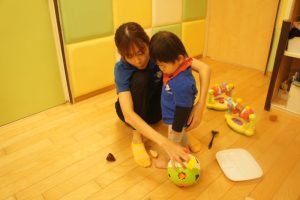 好きな玩具に触れて楽しんだり、保育者と関わりを持ちながら