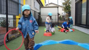 おいかけっこで身体を温めたりして元気いっぱいに過ごしている子どもたちです!!
