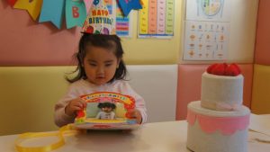 保育者からもらった誕生日カードは嬉しそうに手に持ち