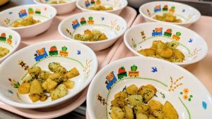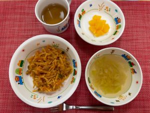 週明けもみんな元気に登園して、給食を楽しみにしている様子でした♪「今日の給食なぁに?」「お野菜もがんばって食べるよ!」「早くや食べたいよ~」と各々お話してくれます。