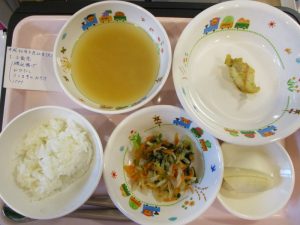 5月22日(火)のこんだて *いちご組さん・りんご組さん 白身魚の磯辺揚げ(ゆかり揚げから変更)・さ...