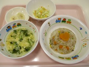 5月25日(金)のこんだて *いちご組さん・りんご組さん ツナピラフ・コールスローサラダ・かき玉スー...
