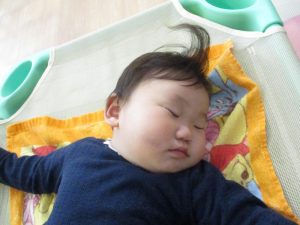 『ねんねしようね。』と言うと、自分からコットに来るようになりましたよ![]()