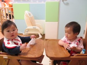 自分で手を拭いたり、『いただきます!』と手を合わすことも出来るようになりました![]()