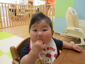 離乳食の間は、お茶と月齢にあったベビ-用のおやつを食べています。