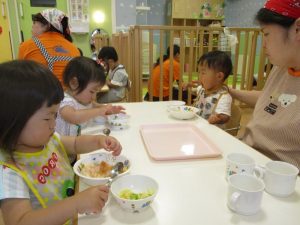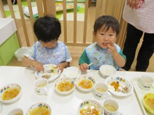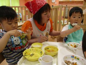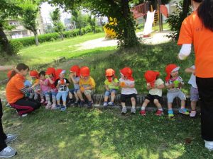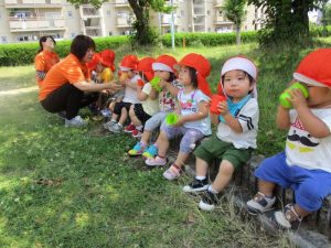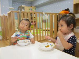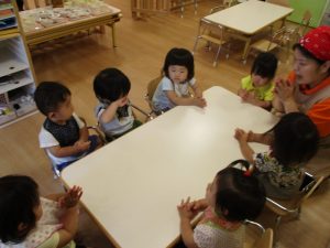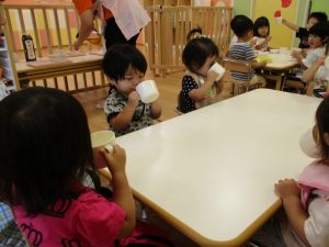 お歌をうたって、朝のおやつを食べました。![]()