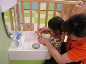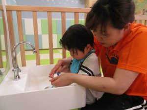 「ただいま! 帰ってきたら手をきれいに洗います。」![]()
