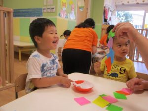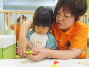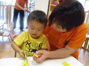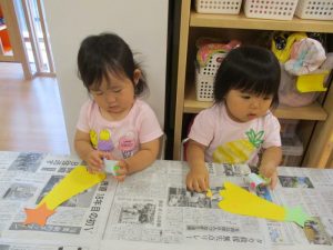 サンライズキッズ高槻園のおともだちも七夕に向けて笹飾りをつくりましたよ