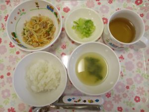 ・いんげんのおかか和え(アスパラに変更、きざみ)