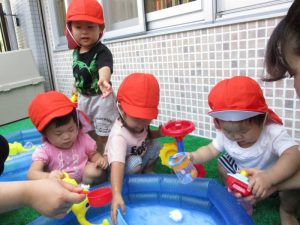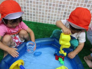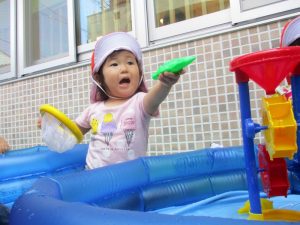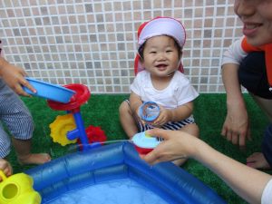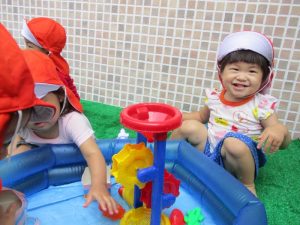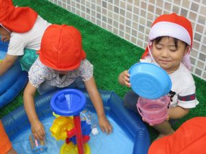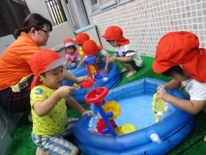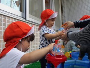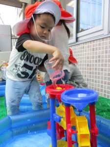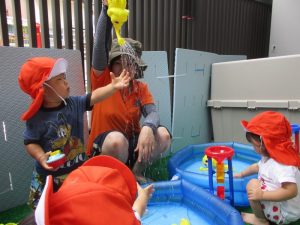 さて今週は、子どもたちが楽しみにしていた 水あそびの様子をお伝えしますよ(^_-)-☆