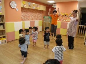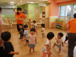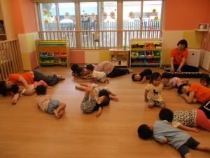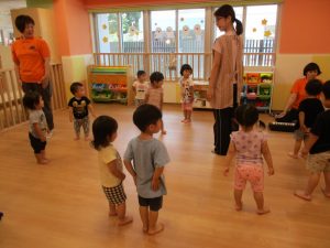水あそびがない日も、子どもたちは元気にお部屋で体を動かしていますよ![]()