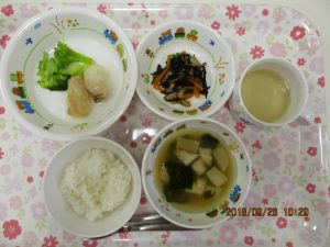 9月20日(木)のこんだて *いちごぐみさん・りんごぐみさん* ・ごはん ・玉ねぎとわかめのみそ汁 ...