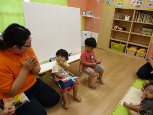子どもたちの大好きな歌だったので一緒に歌ったりてをたたいたり…と