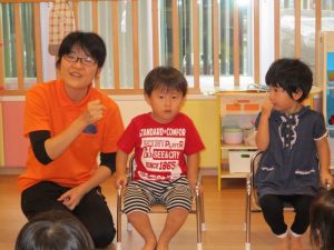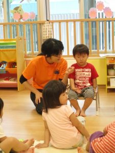 日が経つにつれ、子どもたちがいろんな事に興味を持ち、お話を聞く力もついてきています。