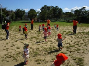 気持ちの良い秋晴れの下、伸び伸びと身体を動かすことを楽しんでいる