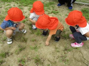 みんな色々素敵な公園でみつけた草花を見せに来てくれます。