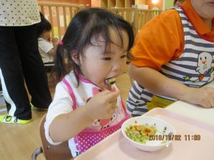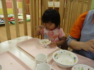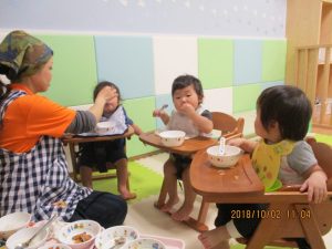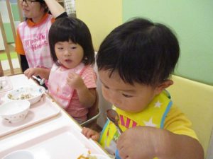 たくさん遊び、保育園に戻ると、おいしい給食がまっています![]()