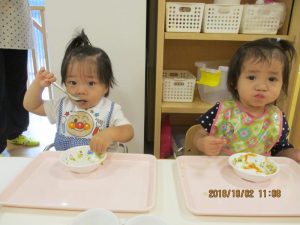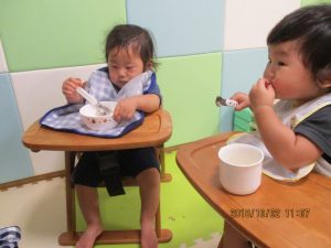 ももぐみさんのお友だちも自分で食べていますよ![]()