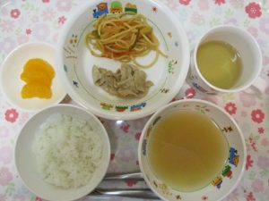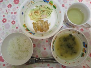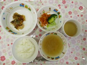 10月9日(火)のこんだて *いちごぐみさん・りんごぐみさん* ・ごはん...
