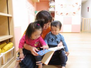 夕方によく 保育士による、絵本の読み聞かせをしているので、