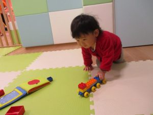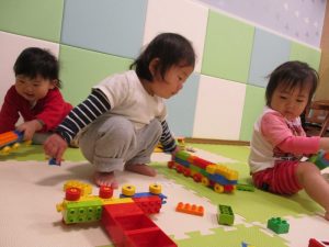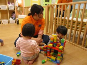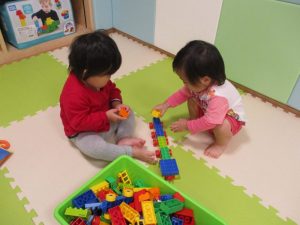 絵本を読んでもらったり、保育士と一緒にブロックを組み立てたり