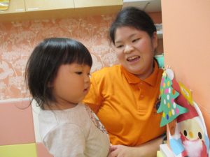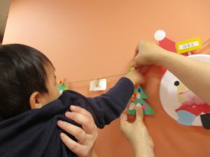 最後は、保育士に抱っこをしてもらって、飾り付けました![]()