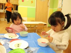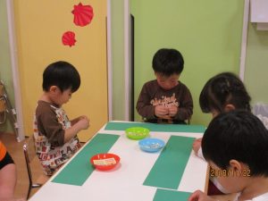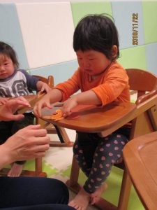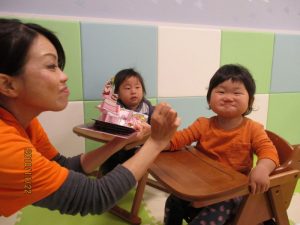 ケーキもパクッと食べる真似をしてうれしそうな子どもたちです?![]()