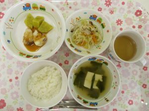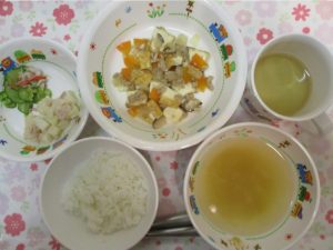 11月8日(木)のこんだて *いちごぐみさん・りんごぐみさん* ・ごはん ・豆腐とわか...
