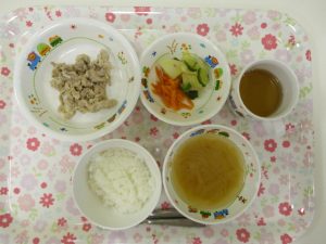 12月27日(木) のこんだて ・ご飯 ・みそ汁 ・焼肉 ・ジャーマンポテト ・人参甘煮  ...
