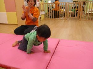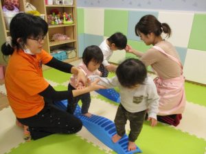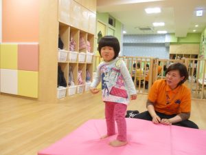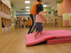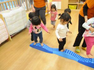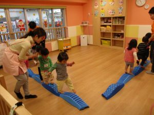 ウエーブ平均台では、先生と手を繋がなくても、バランスを取って歩くことが出来るお友だちが増えてきました![]()