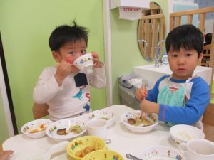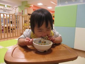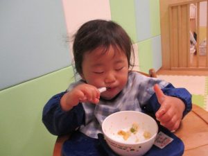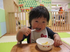 給食も上手にスプーンを使って、自分で食べていますよ![]()