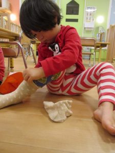 靴下も手伝ってもらわなくてもできるよ![]()