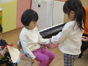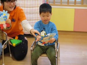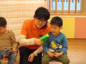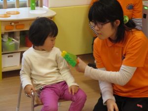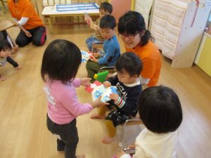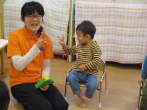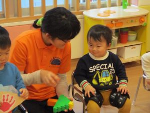 お名前を言えず恥ずかしがっているお友だちは、名前を呼ばれたら返事をしてくれました![]()