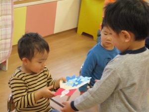 誕生日カードのプレゼントをお友だちからもらうと、とても嬉しそうに早速カードを開いて見ていましたよ![]()