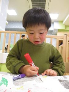そして、最後はりんごぐみさん?凧作り~お絵かき~