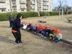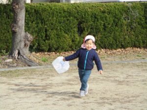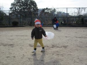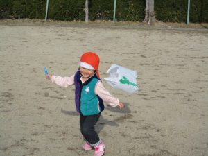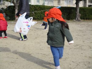 』と走り始めましたが、凧が気になるようで、後ろを振り返りながら進んでいるお友だちがいました![]()
