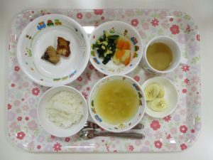2月26日(火)のこんだて ・ごはん ・みそ汁 ・かじきのカレームニエル(かじきがたらに変更) ・お...