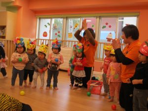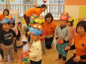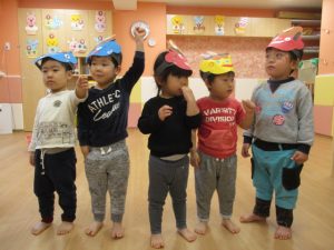 サンライズキッズ高槻園では、2月1日(金)に豆まき会がありました![]()