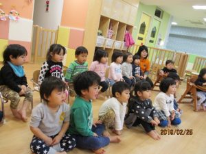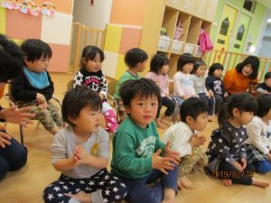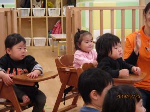 サンライズキッズ高槻園は、3月生まれのお友だちがいないので、2月が今年度最後の誕生会と、なりました![]()