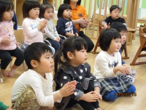 サンライズキッズ高槻園は、3月生まれのお友だちがいないので、2月が今年度最後の誕生会と、なりました![]()
