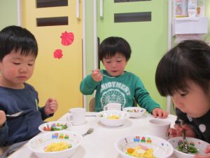 好きな食べ物は人参と聞いて、周りののお友だちが「すご~い!!」と、褒めていました
