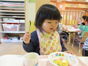 給食では、誕生日メニューで、子どもたちは喜んで食べていました![]()