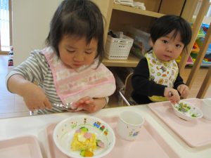 2月生まれのお友だちは、りんごぐみさんの一人だけでしたが、物怖じすることなく、楽しく参加をすることが出来ましたよ![]()