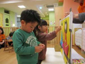 桃の花の飾り付けは、りんごぐみさんがお手伝いをしてくれました?